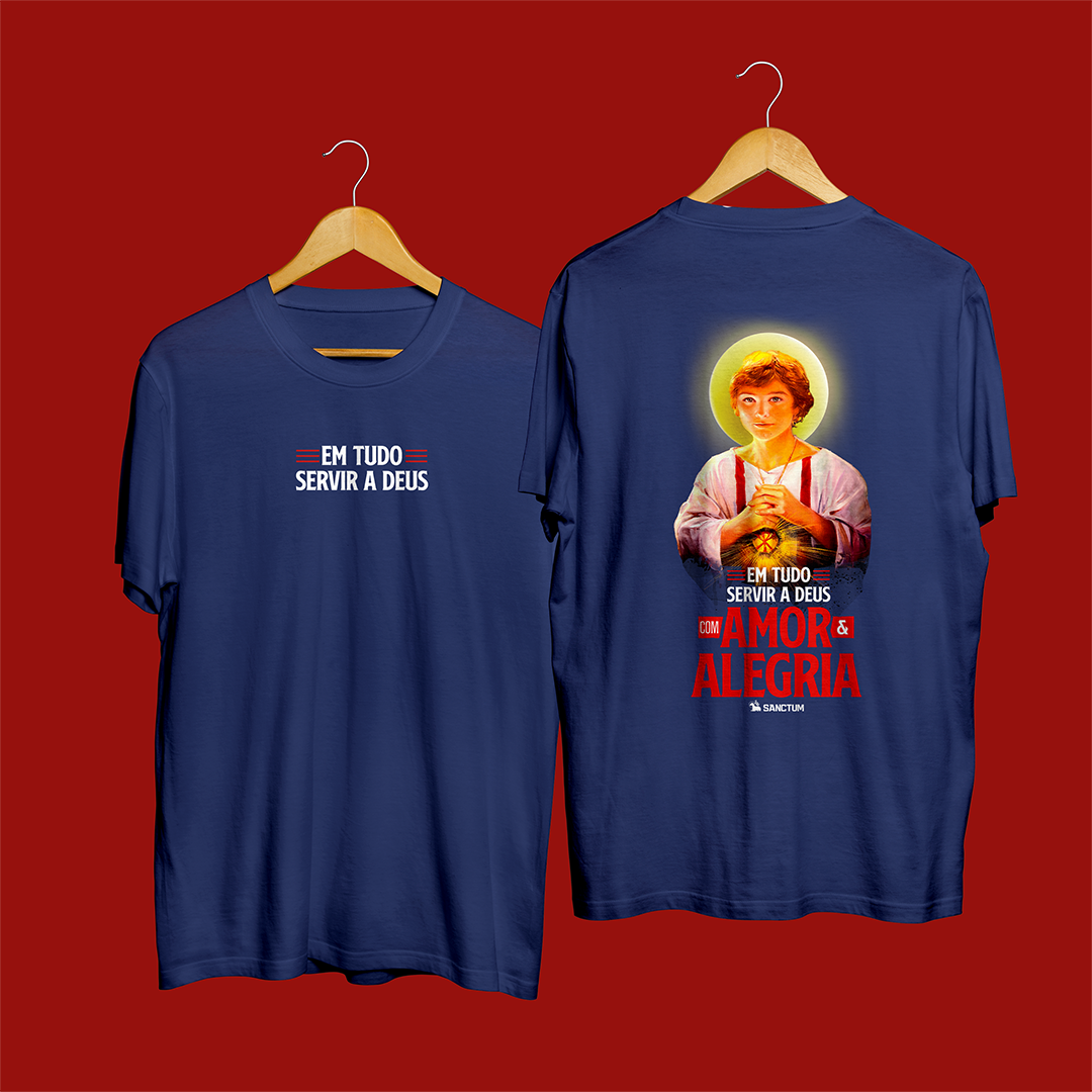 Essa estampa inspira coragem e fé, sendo ideal para aqueles que desejam expressar sua devoção e seu desejo de viver a alegria de servir a Deus em todas as circunstâncias.